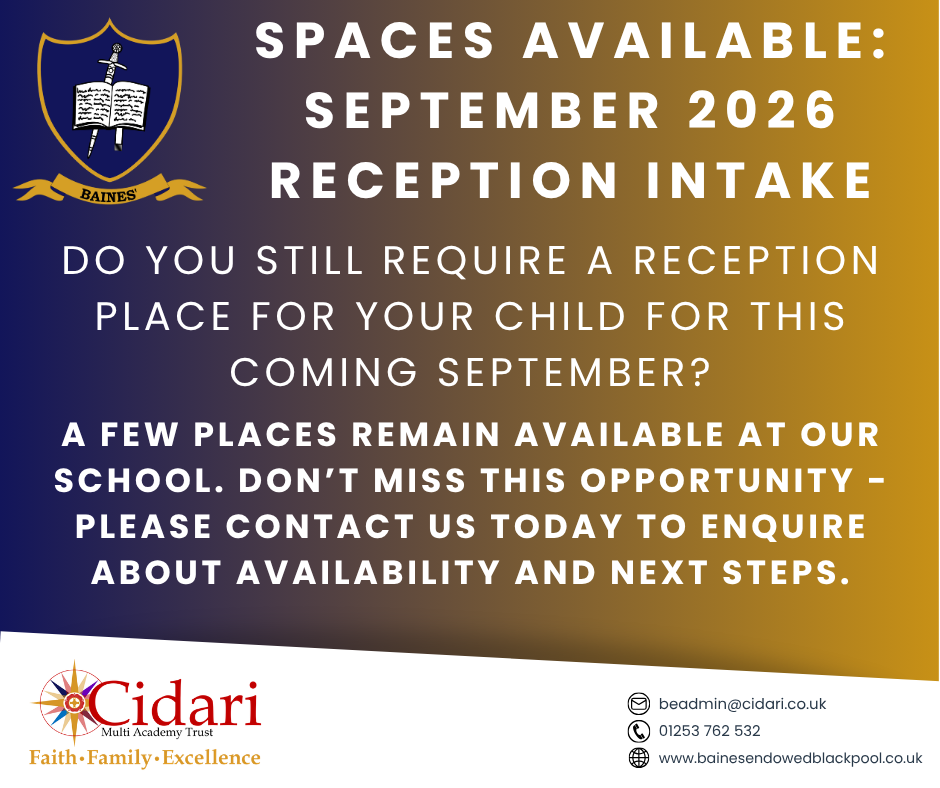 We hope that you decide that Baines’ is the best place for your child and we look forward to welcoming you when you visit.